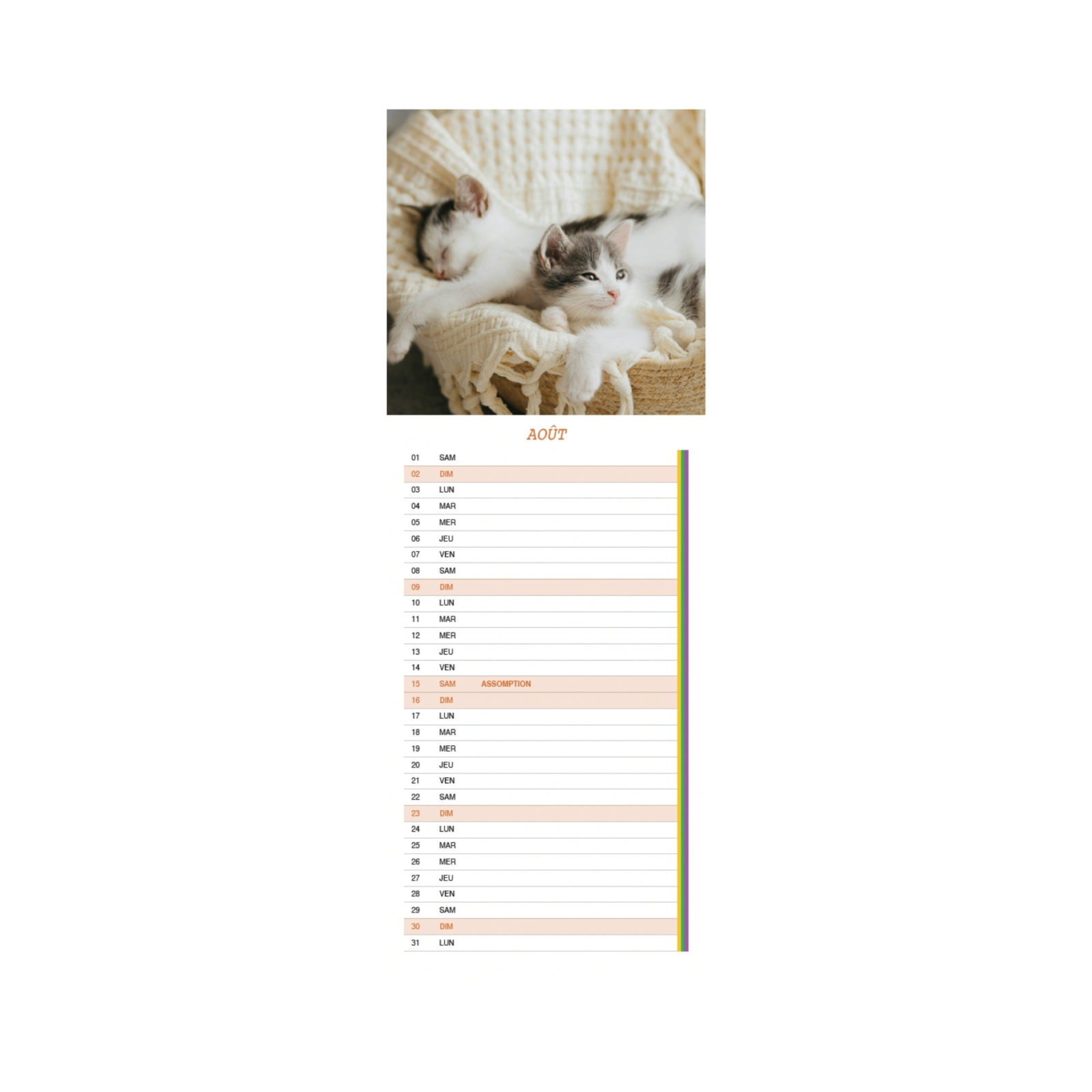 Chaque mois, un petit compagnon tout doux viendra égayer votre quotidien et veiller tendrement sur votre emploi du temps.