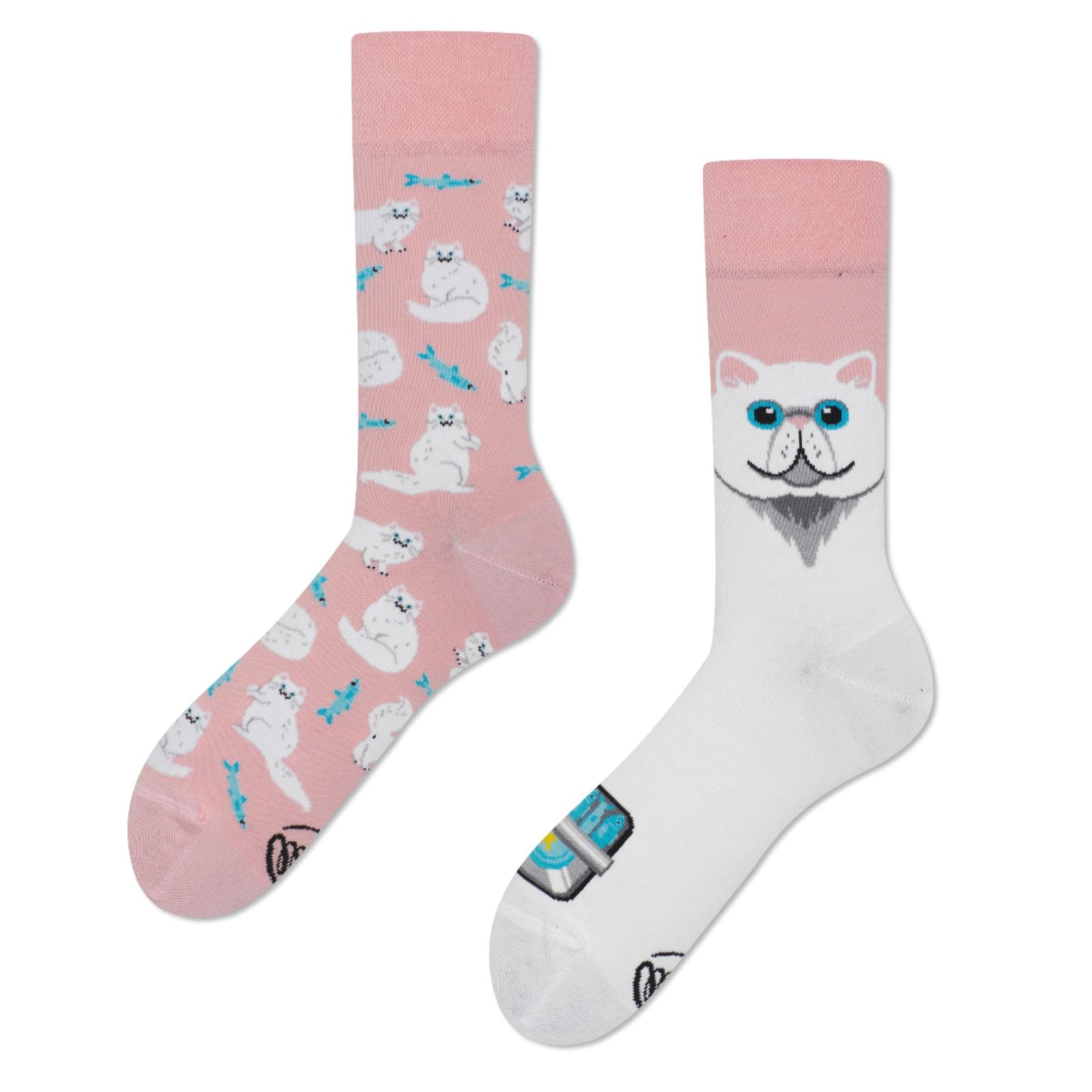 Confort et style au quotidien. Ces chaussettes au motif chat blanc sur fond rose apportent une touche délicate et raffinée à vos tenues. Conçues majoritairement en coton, elles offrent douceur et confort tout au long de la journée. Composition : 80% coton, 15% polyamide.