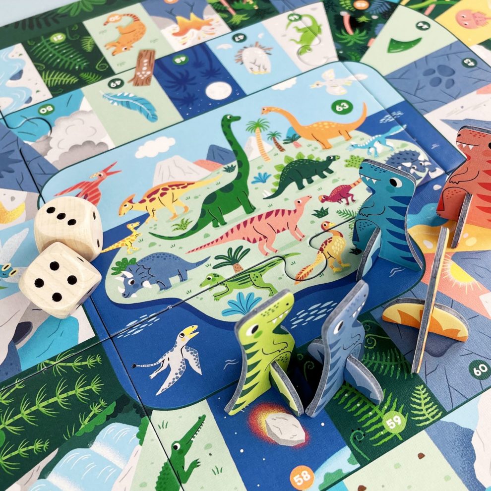 L’aventure se déroule tout au long de la célèbre spirale du jeu de l’oie pour atteindre la case 63 et rejoindre l’île aux dinosaures. Les cases « passages secrets » et « raccourcis » aident à aller plus vite mais attention aux différents pièges sur le chemin !