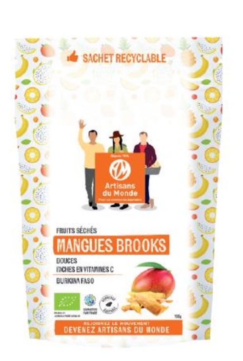 Mangues séchées issues de l’agriculture biologique et du commerce équitable.