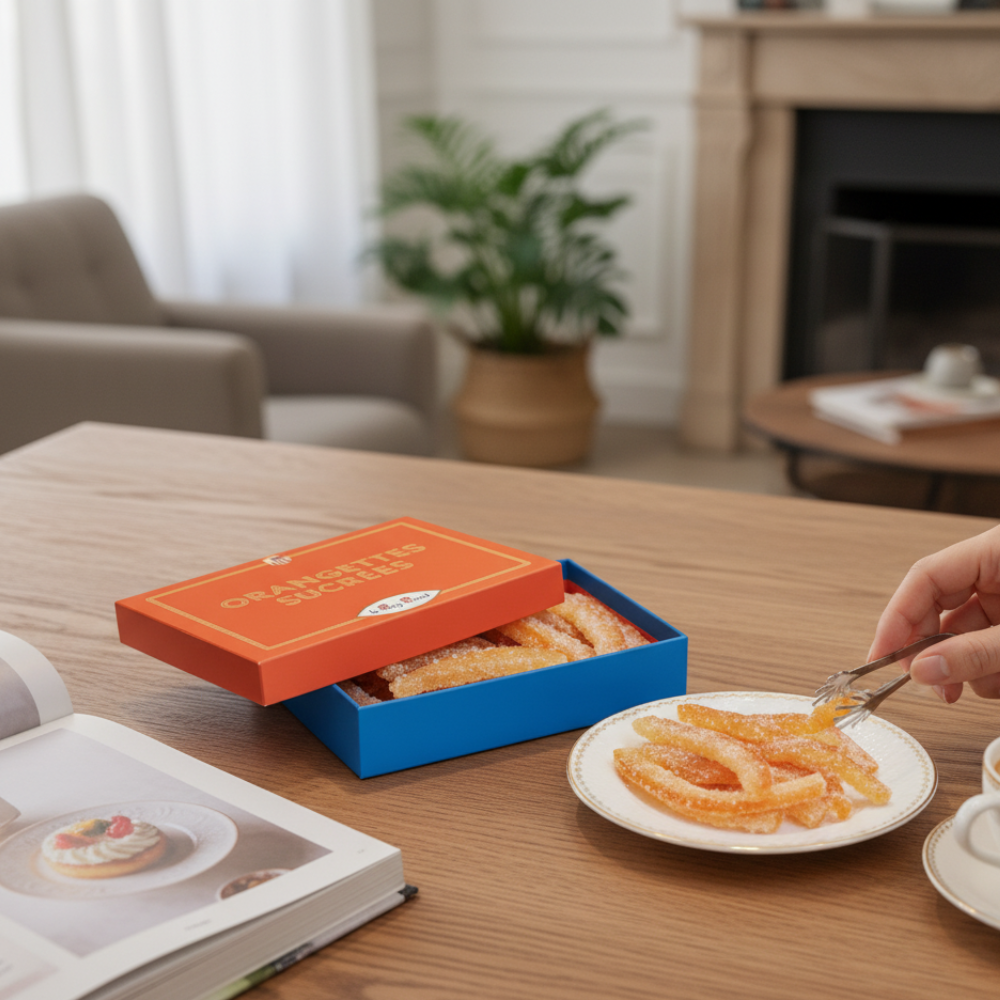 L’orangette sucrée est une confiserie réalisée à partir de fines lamelles d’oranges confites. Elles sont enrobées d’une fine couche de sucre cristallisée pour leur apporter un croquant délicat. Cette douceur séduit par son équilibre parfait entre l’amertume subtile de l’écorce, la douceur du fruit et le craquant du sucre.