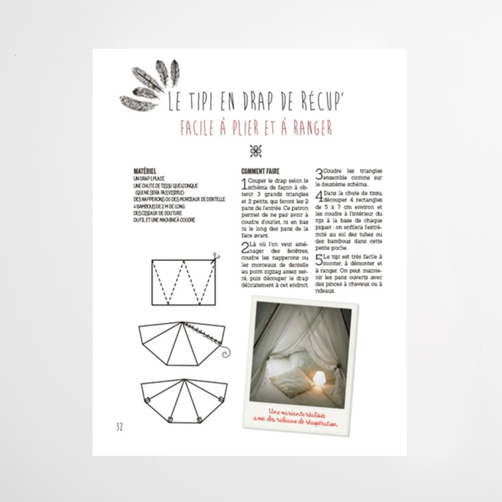– Des petits ateliers ludiques et créatifs à faire ensemble: des réalisations faciles avec très peu de matériel pour éveiller la créativité et jouer avec les enfants dans un esprit écolo, à l’intérieur ou en pleine nature : des déguisements, des origamis avec des enveloppes usagées, des bracelets avec des brosses à dents, des tipis avec des vieux draps…
